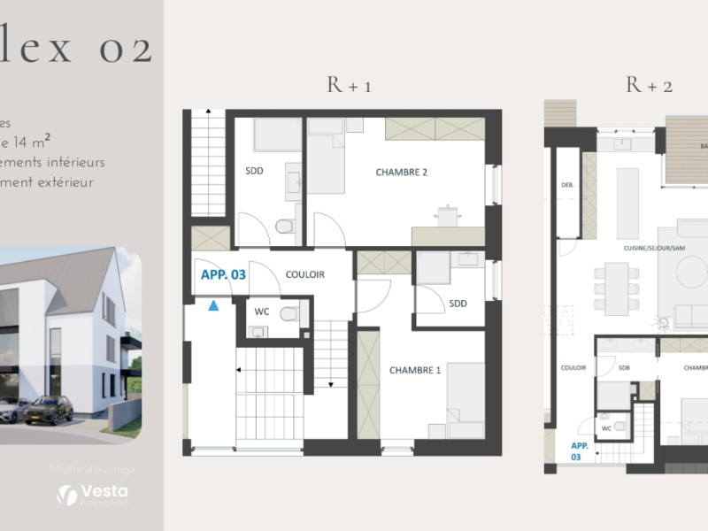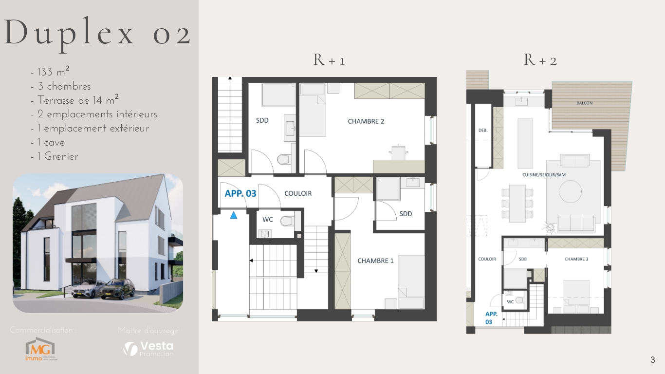 Appartement DUPLEX (1er + 2ème) de +/- 140 m²